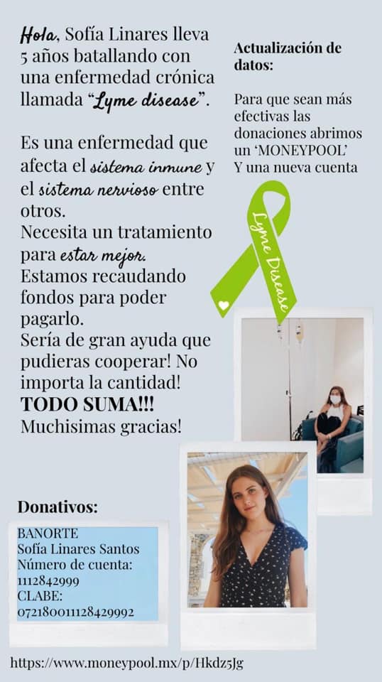 A través de redes sociales se ha dado a conocer la historia de Sofía Linares, una joven que desde hace cinco años se encuentra luchando contra la enfermedad de Lyme disease, padecimiento crónico que no cuenta con medicamento que logre eliminarlo del cuerpo humano, pero que gracias a un tratamiento mejora la calidad de vida del paciente.